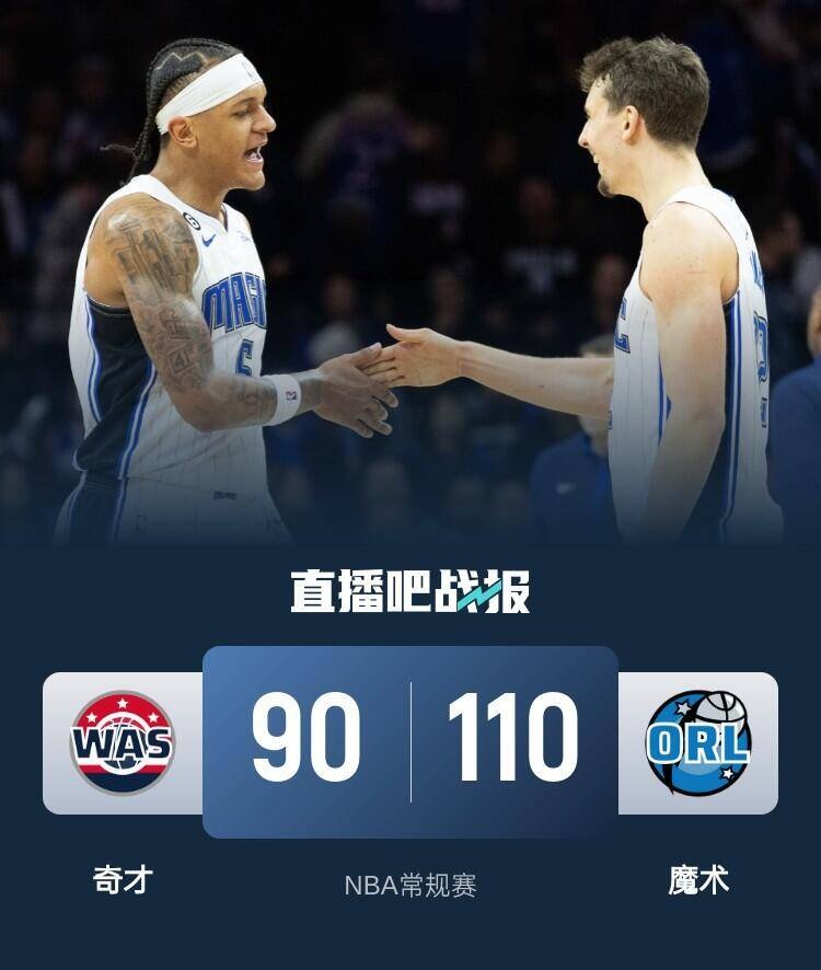 小瓦格纳23+7+5 班凯罗19+5+5 魔术第三节一波流送奇才6连败