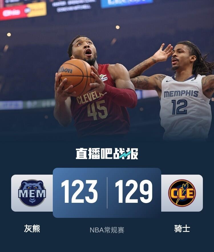 首节一上来莫兰特早早开张连续取分,米切尔不遑多让里突外投强势回应,莫布里连续杀伤内线,末段骑士一波8-0稍稍拉开比分,首节结束时骑士领先4分,次节回来,灰熊多点开花紧咬比分,米切尔延续火力予取予求,双方你来我往杀得难解难分,半场战罢,骑士依然领先6分。易边再战后韦尔斯飚中三分一度帮助灰熊反超,但骑士内外结合稳住局势,三节结束后骑士保持5分优势,末节决战,骑士将分差拉开到两位数,灰熊连投带罚拉回悬念,但小贾伦关键两罚不中后灰熊翻盘未果,骑士连中罚球锁定胜局,最终骑士129-123力克对手豪取7连胜。