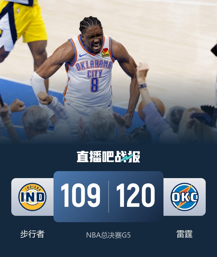 首节之争雷霆攻防在线抢开局并不断扩大优势,他们的积极拼抢8分钟就完成5次抢断给足压迫力,末段维金斯和华莱士接连命中三分一度拉开12分的优势。次节哈利伯顿开局不久便因为小腿伤势返回更衣室,虽然很快回归但半场5投0中一分未得的表现看得出来受到影响;雷霆方面多点开花完全掌控比赛,上半场首发合计送出14次助攻打出流畅配合,他们一路保持优势并带着14分领先进入下半场。下半场归来步行者背水一战,节中他们送出一波15-6的攻势将原本15分的劣势追至6分,哈利伯顿虽然完全不在状态,但麦康纳单节砍下13分成为追分关键;末节西亚卡姆又不断冲击篮下拿分一度追至2分看到翻盘希望。然而眼看着有望翻盘但雷霆同样苏醒,球队表现最好的杰伦威命中关键三分止住颓势,随后雷霆轰出一波21-8的攻势直接浇灭步行者的希望并奠定胜局。最终,雷霆主场力克步行者夺得天王山胜利,总比分上3-2取得领先。