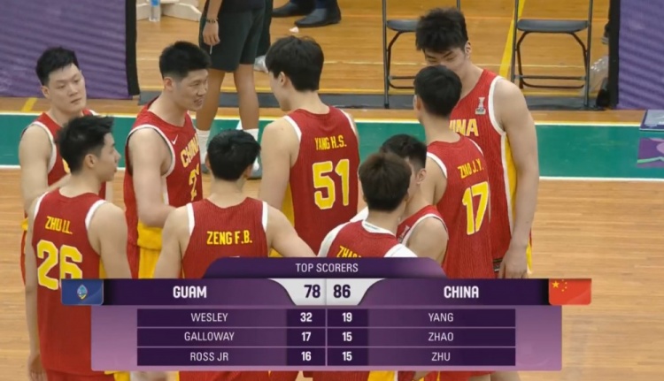 比赛上来,赵睿和朱俊龙连中三分帮助中国男篮取得领先,但显然对手做了充分准备,他们迅速反扑并完成反超,廖三宁出现受伤情况好在是没有大碍,重新回到场上并打进精彩压哨上篮,次节杨瀚森连打两个2+1,不过关岛男篮始终咬住比分,紧要关头赵睿站了出来,个人连拿10分打破僵持,朱俊龙的压哨三分将分差拉开到两位数,半场结束时中国男篮领先11分;下半场回来,两队继续保持拉锯,不过分差一直在十分左右,第三节单节关岛男篮还赢了1分,末节中国男篮没有再给对手任何迫近比分的机会,最终中国男篮力克关岛男篮,最终5胜1负小组第一晋级亚洲杯正赛。