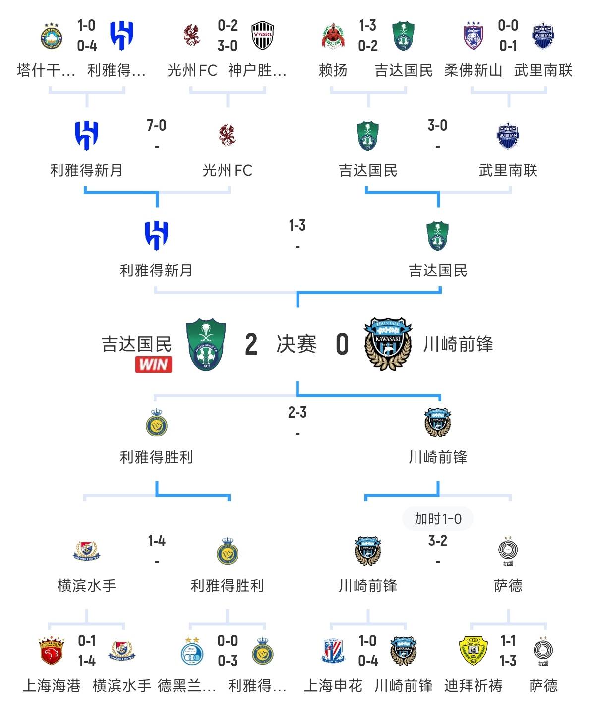 5月4日讯 亚冠精英联赛决赛,吉达国民2-0川崎前锋夺冠。历史上,吉达联合曾在1986年、2012年两次获得亚冠亚军。