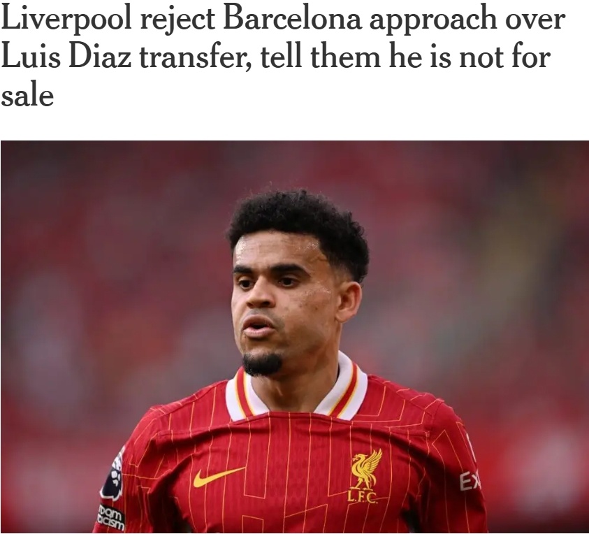 06月05日讯 据The Athletic王牌记者David Ornstein最新消息,利物浦断然拒绝了巴萨对路易斯-迪亚斯的接触,并且告知巴萨,这名球员是非卖品。