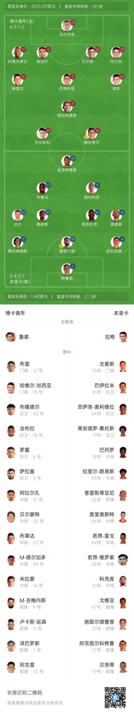 博卡青年替补:12-布雷、13-哈维尔-加西亚、18-法布拉、42-布隆德尔、3-萨拉基、6-罗霍、15-阿拉尔孔、30-贝尔蒙特、27-布拉伊达、43-米尔顿-德尔加多、14-米拉蒙、9-M-吉梅内斯、7-泽巴罗斯、11-卢卡斯-延森、33-阿吉雷