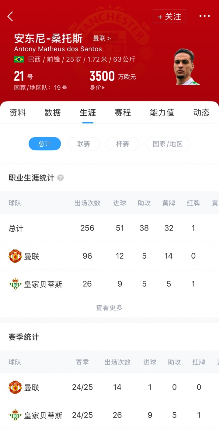 曼联当初以将近1亿欧元从阿贾克斯签下安东尼,如今为收回部分投资,要求4000万欧元的转会费。而贝蒂斯今夏最多愿意支付一半,也就是分两期支付:今年支付2000万,2026-2027赛季再支付2000万。双方可能在折中的价位上找到解决这个僵局的办法。