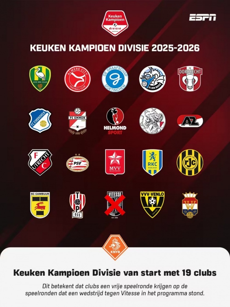 官方:荷乙球队维特斯败诉,将无法参加职业联赛