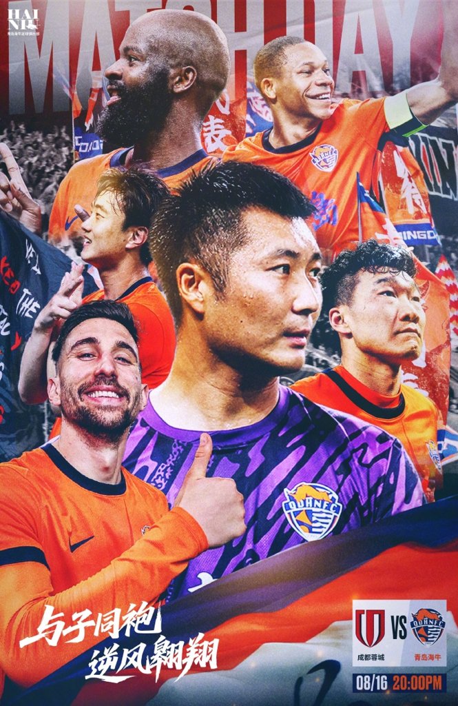 08月16日讯 今晚20点,中超第21轮成都蓉城vs青岛海牛。赛前首发阵容已经公布。